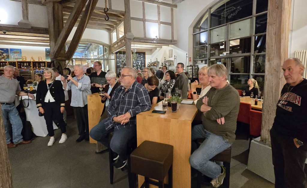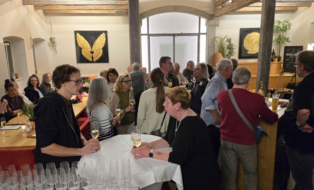 Während tagsüber die Besucher durch das Zollhaus schlenderten, waren es bei der Vernissage die Aussteller selbst, Freunde und Familien, Sponsoren sowie Vertreter der Gemeinde. So kamen sie in aller Ruhe dazu, zu schauen und bestaunen, was die Kollegen so alles machen oder sich ein bisschen auszutauschen und den Start zu feiern. Musikerin Yasi Hofer und ihre Band sorgten für ordentlich Stimmung. Sie ist schon einige Jahre dabei und Jürgen Mayer nannte sie eine „begnadete Künstlerin“, die perfekt zur Augenweide passe.