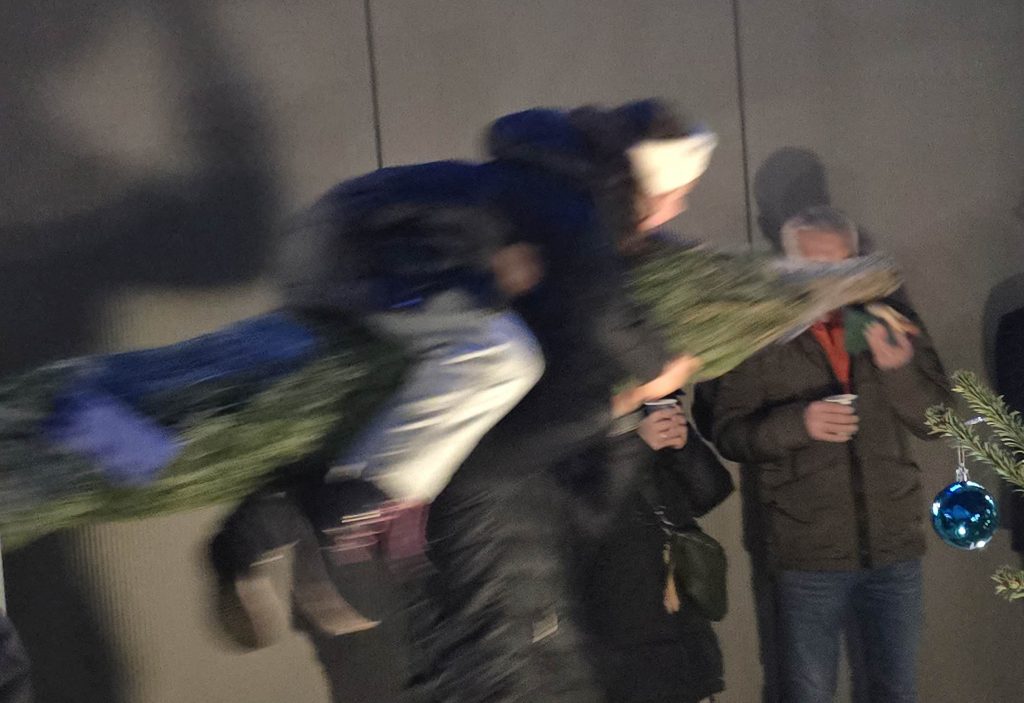 Außerdem gab es neben Glühwein, Punsch, Zopf und Lebkuchen dieses Mal auch Grillwürste. Während die einen schon eingeladen hatten und an den Stehtischen die Stärkung genommen und miteinander ins Gespräch kamen, wanderte ein Baum neben dem anderen Richtung Parkplatz. Mal über die Schulter gepackt, mal von zwei Personen getragen oder manchmal wollten auch die Kinder unbedingt helfen.