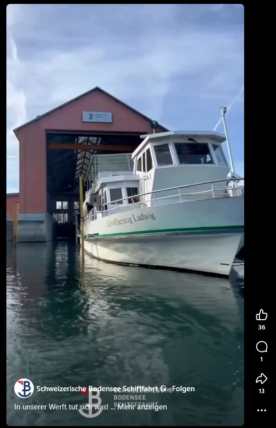 So war es nicht geplant, aber es passt zusammen: Wenn die Marienschlucht Ende März 2026 wiedereröffnet und die neue Schifffahrtssaison beginnt, wird die MS Großherzog Ludwig in neuem Glanz erstrahlen. Das Schiff der Gemeinde Bodman-Ludwigshafen befindet sich momentan bei der Revision in der Werft in Romanshorn (Schweiz). Hauptsächlich geht es um die Überholung der Steuerungsanlage, die alle zehn Jahre fällig ist, aber das Schiff erhält auch eine neue Lackierung.