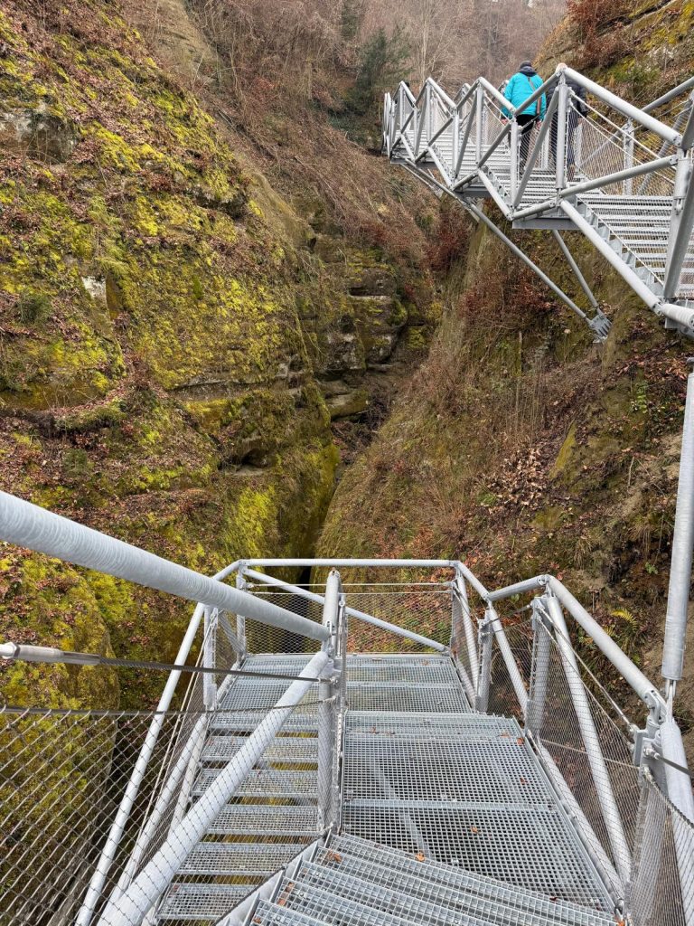 Zum aktuellen Stand bei den letzten Arbeiten in der Schlucht erklärte Weckbach übrigens, dass noch an Geländern gearbeitet werden müsse. Am Schluchtplateau laufen Erdarbeiten und für die Schilder des Infopfads müssten Fundamente betoniert werden.
