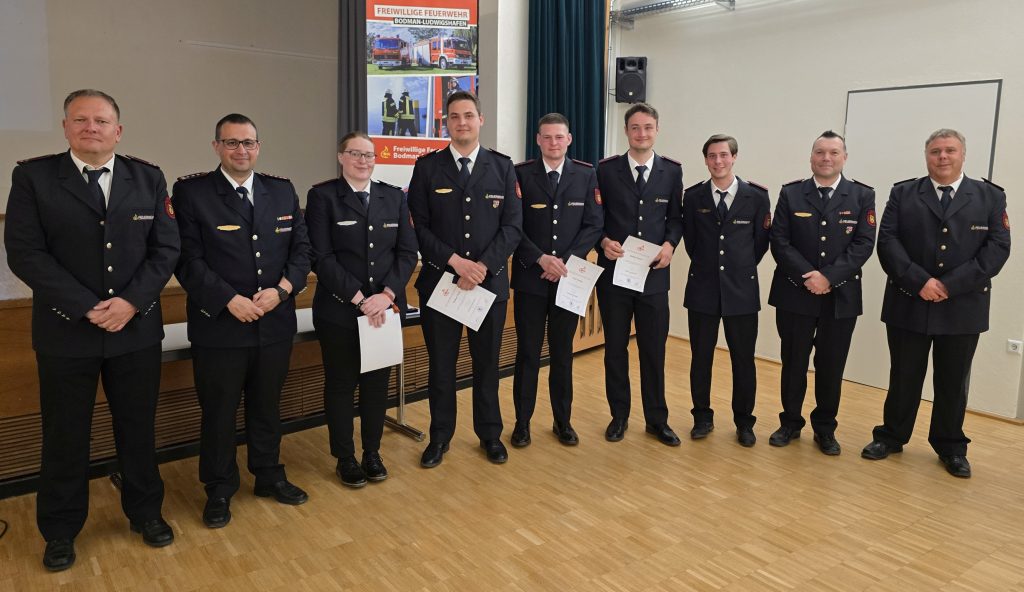 Den Rang Feuerwehrmann oder -frau haben nun: Eva Lämmerzahl, Franziska Schütte und Andreas Schuhmann. Annalena Reutlinger ist nun Oberfeuerwehrfrau, Nicolas Paul und Janis Kaupert sind Oberfeuerwehrmänner und Markus Bretzke wurde zum Brandmeister ernannt. Ein paar weitere konnten nicht anwesend sein.