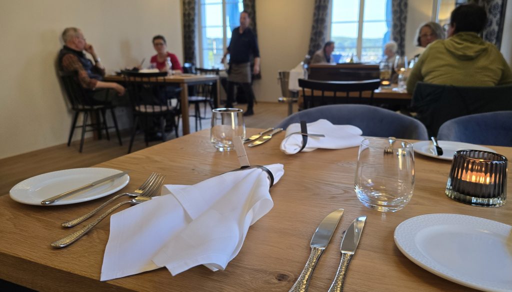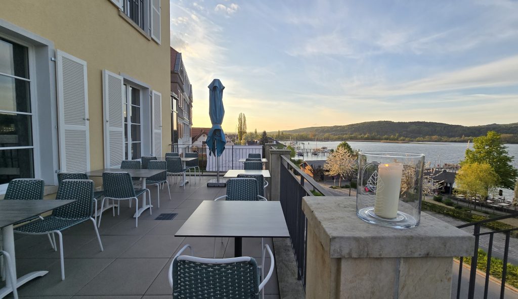 Die Blautöne des Bodensees finden sich im neugestalteten Restaurant und auf der Terrasse wieder und schaffen so eine besondere Atmosphäre. Der See solle auf diese Art umso mehr wirken, beschreibt Jessica Heer. Auf der Terrasse und an den Fenstertischen hat man zudem einen wundernbaren Ausblick. Alles sieht sehr edel und einladend aus – die Speisekarte ebenfalls. Dort ist viel Regionales dabei und speziell auf den See oder Bodman gemünzt. Aber keine Sorge, die Küche ist trotzdem bodenständig und die Preise sind es auch.