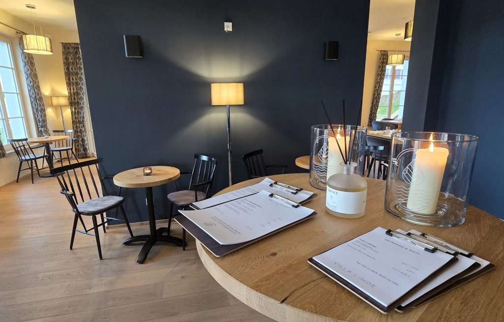 Der Hotelbetrieb beginnt übrigens Anfang Mai, wobei die Buchungsmöglichkeiten jetzt im Internet starten sollen. Die Linde verfügt laut Jessica Heer über 12 Doppelzimmer und zwei Suiten. Auch Tische im Restaurant können online gebucht werden. Aktuell stehen innen bis zu 100 Plätze zur Verfügung, auf der Terrasse bis zu 50. Damit man auch bei kühlem Wetter draußen sitzen kann, gibt es hellblaue Decken, wie wie die Stühle und Dekoration die verschiedenen Seefarben aufgreifen.