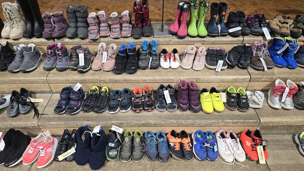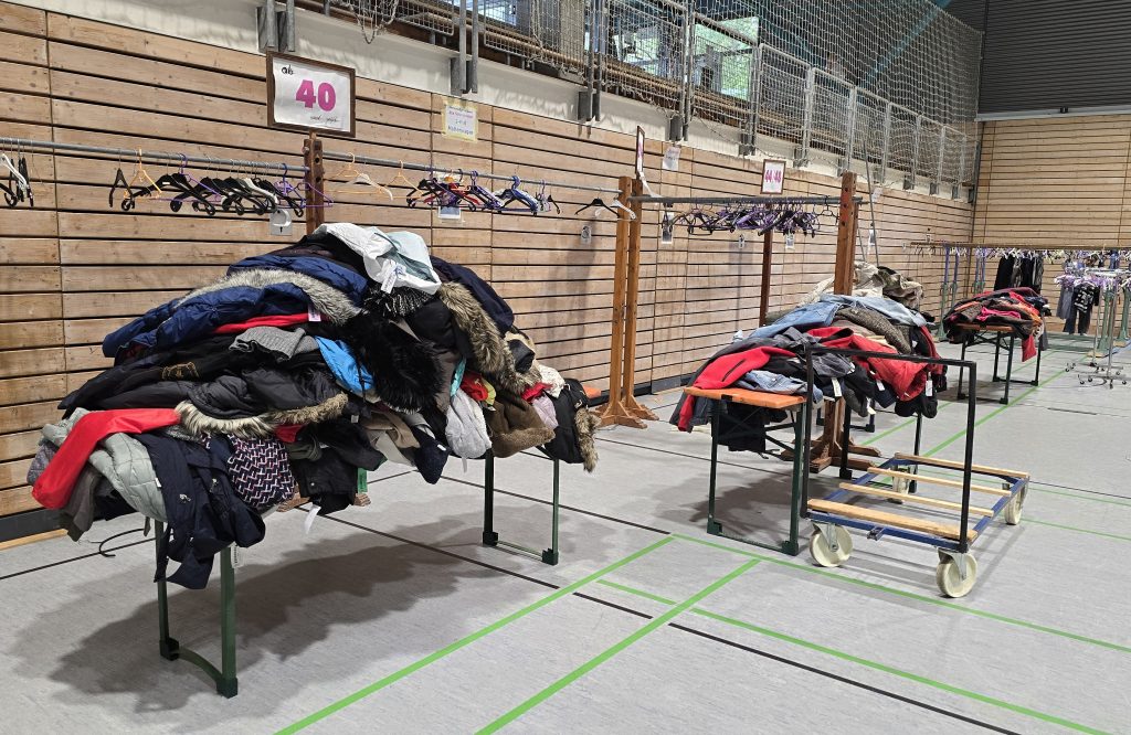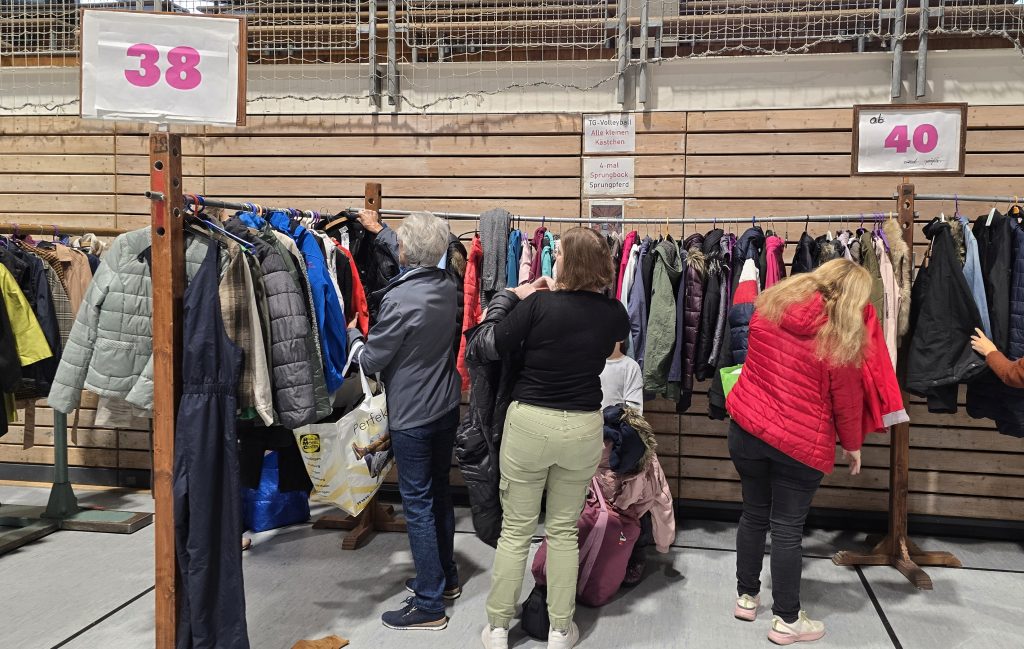 Aufgrund der Nachfrage und weil Jugendliche manchmal bereits kleine Erwachsenengrößen bräuchten, gebe es inzwischen auch Erwachsenenkleidung bis XXL bei der Börse, erzählen Sabrina Stoffel und Natascha Schmid. „Manche Leute kommen sogar nur deshalb“, sagt Sabrina Stoffel. Ihre Kollegin ergänzt: „Die Nachfrage ist gestiegen.“ Das zeigt sich dann auch live: Viele Erwachsene stehen an den Tischen mit ihren Größen oder schauen an den Kleiderstangen nach Jacken für die kalte Jahreszeit.