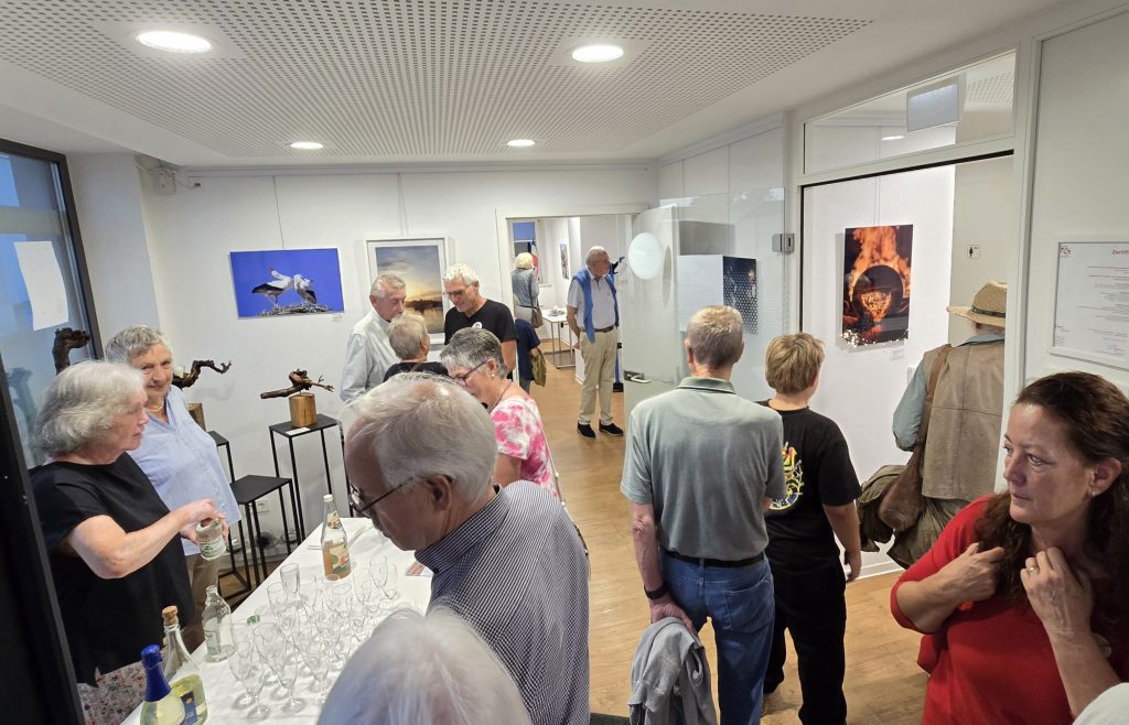 Die meisten Bilder haben durch den Druck auf Acrylglas eine besondere Wirkung. Die Besucher standen fasziniert vor den Fotos und nutzten die Gelegenheit, über die Motive zu sprechen und fragten die Fotografin unter anderem nach der Technik: Wie kriegt man es hin, Schwanküken so zu fotografieren? Die Antwort: Mit einem Teleobjektiv an einer Spiegelreflexkamera, um die Tiere nicht zu stören. So kann man auf Distanz bleiben, aber trotzdem solche Motive einfangen. Das braucht nur oft etwas Geduld.