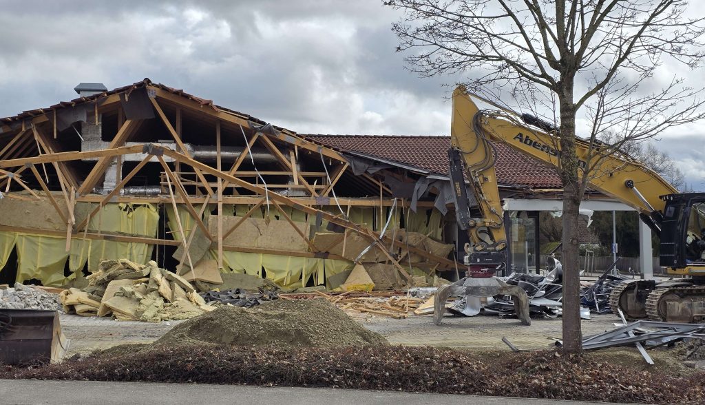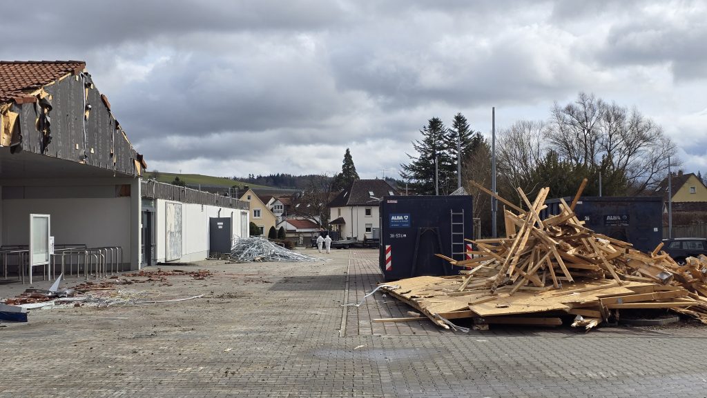 Bei Lidl in Stockach dauert es bis mindestens Herbst oder länger, bis dort wieder einkaufen möglich ist. Innerhalb einer Woche wurde der Markt ausgeräumt und nun läuft der Abriss des Gebäudes, das größer neu gebaut wird.