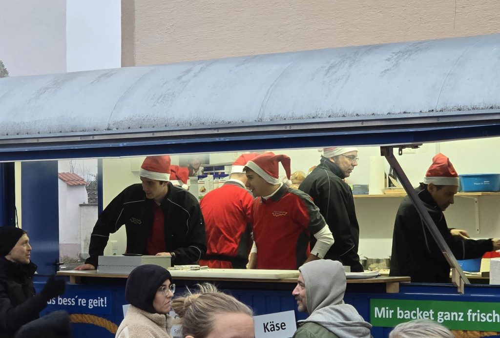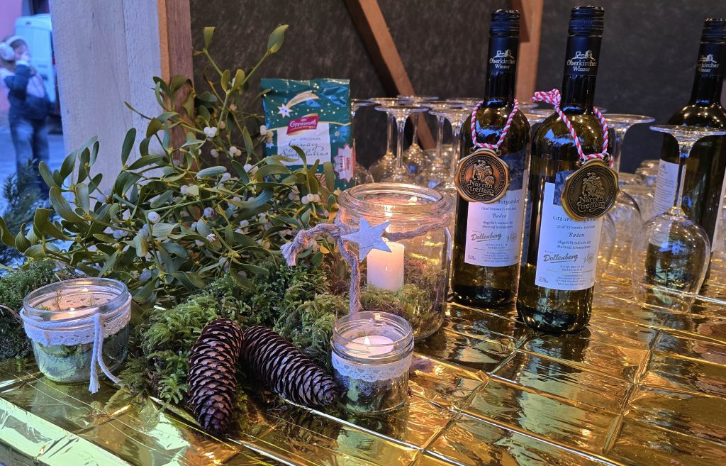An weiteren Ständen warteten warme Getränke auf die Besucher. Neben dem weihnachtsmarkt-typischen Glühwein gab es an einem Stand des Narrengerichts auch Glüh-Gin. Und obwohl der Winterzauber kein normaler Weihnachtsmarkt ist, war auch ein Mitnehm-Stand in der Runde dabei: Zugunsten den Kindergartens zum guten Hirten hatte viele Eltern leckere Weihnachtsplätzen gebacken, die es hübsch verpackt zu kaufen gab.