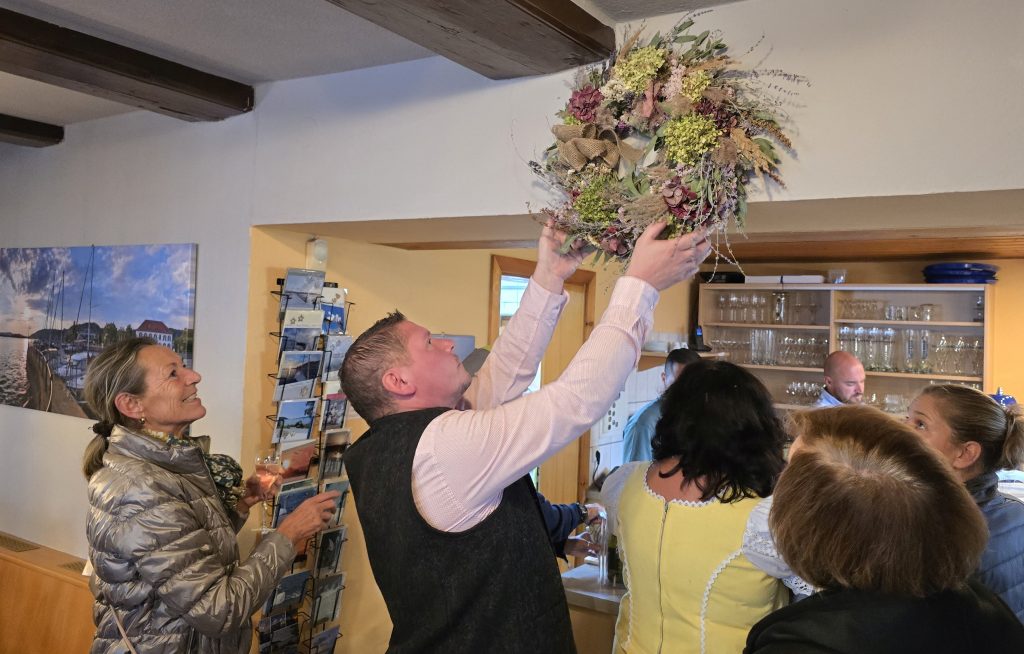 Die renovierte Gaststube mit edlen Grautönen gefiel den Gästen. Die Gratulanten standen Schlange, um Christian Borngräber und Julia Katz Erfolg zu wünschen. Einige hatten Einweihungsgeschenke dabei, die perfekt abgestimmt oder sogar liebevoll selbstgemacht waren – so zum Beispiel ein Holzschild oder ein Aufsteller für den Stammtisch.