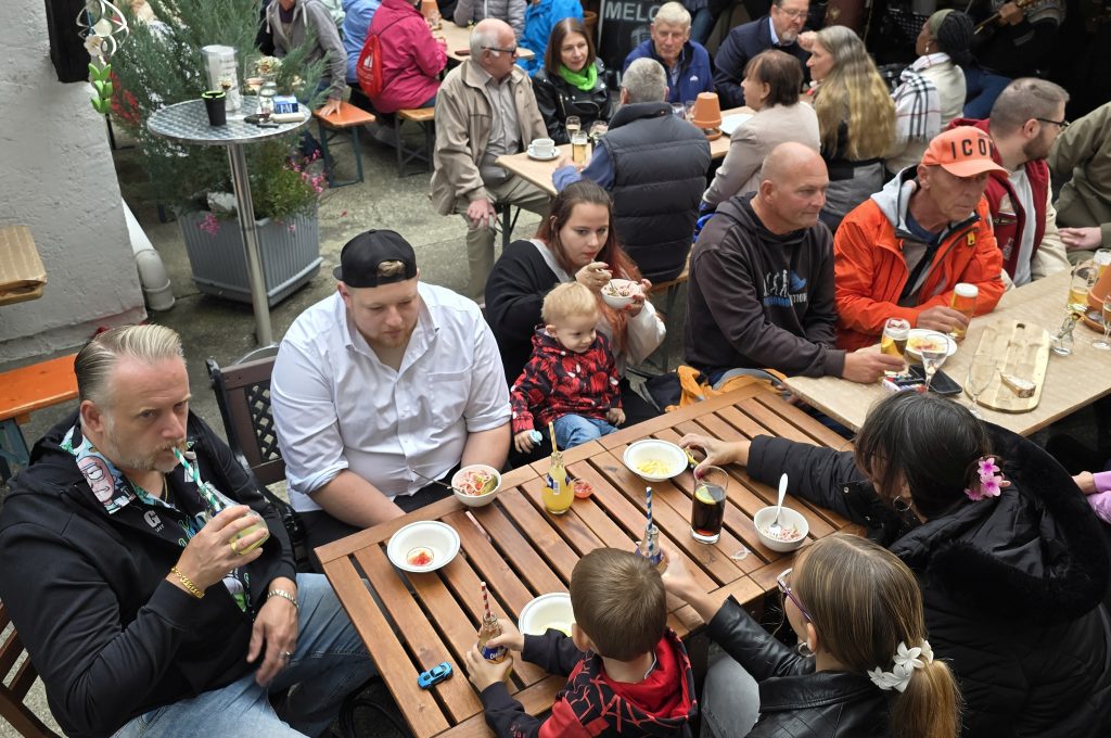 Über den Nachmittag und Abend lag die Zahl der Gäste mehr als deutlich im dreistelligen Bereich. Wenn Leute gingen, liefen direkt neue in den Gastraum oder der Biergarten. Dazu kamen noch die vielen fleißigen Helfer – alles Familie oder Freunde von Christian Borngräber und Julia Katz, der guten Seele des Hauses. Sie verteilten Getränke und gemeinsam mit dem Chef auch die Häppchen. Zur Eröffnung gab es alles gratis und obendrein noch Live-Musik im Biergarten.