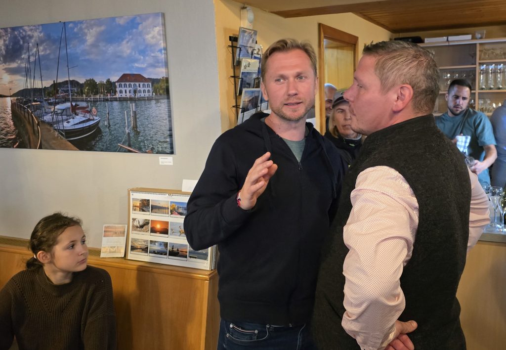 Zusatztische für weitere Gäste waren eigentlich immer noch zu wenig – so viele Besucher strömten zur Eröffnung von „Bornis Seestüble“ mit Vernissage am Tag der Deutschen Einheit in Ludwigshafen. Gefühlt das halbe Dorf wollte das neue gutbürgerliche Lokal sehen, ausprobieren und Christian „Borni“ Borngräber gratulieren. Unter den Gästen war natürlich auch Bürgermeister Christoph Stolz, der sich als Ludwigshäfler mit den anderen Besuchern über das neue gutbürgerliche Restaurant freute.