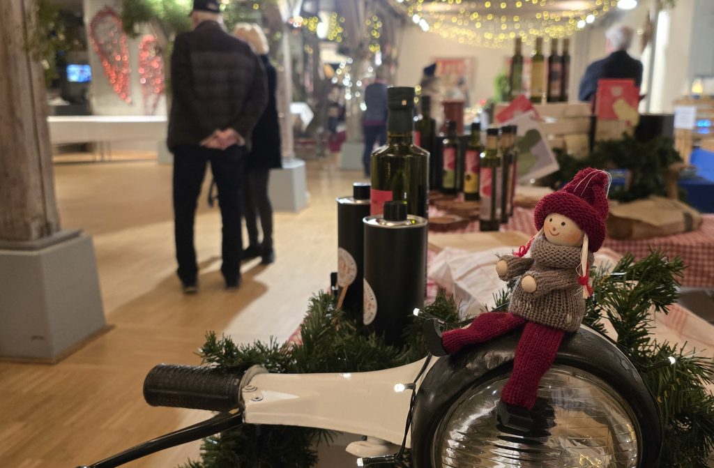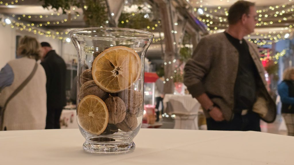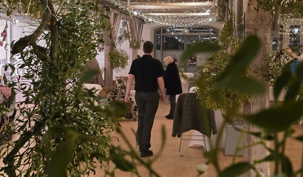 Mistelzweige, die man auch kaufen konnte, hingen überall von der Decke und waren eine besondere Dekoration. Aber keine Sorge: Sich unter den Mistelzweigen zu küssen war nicht an der Tagesordnung – nur Schlendern, Schauen und Shoppen an den Ständen, an denen es fast durchweg regionale Ware gab und bekannte Gesichter warteten.