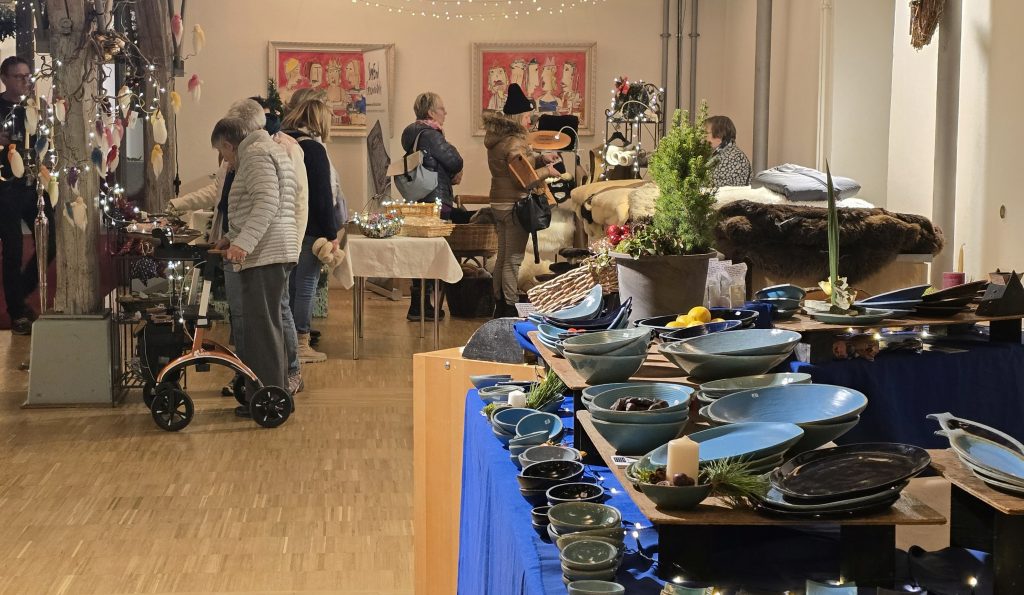 Die Mischung war genau richtig und kam bei den Besuchern sehr gut an: Liköre, Schnäpse und Ähnliches, hochwertige Lebensmittel, kuschelige Felle, stilvolle Keramik und liebevolle Deko- und Geschenkideen samt Weihnachtskarten mit lokalen Wintermotiven oder auch beide Bände der Seeend-Geschichten. Kurz: Alles, was das Herz begehrt in kleiner, feiner Runde.