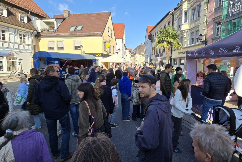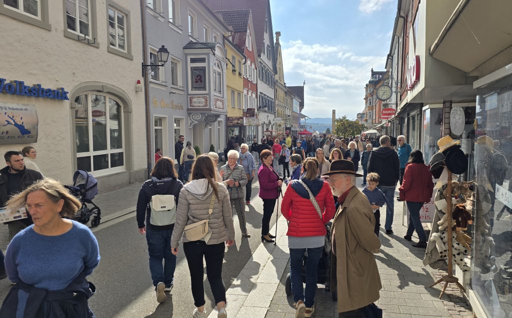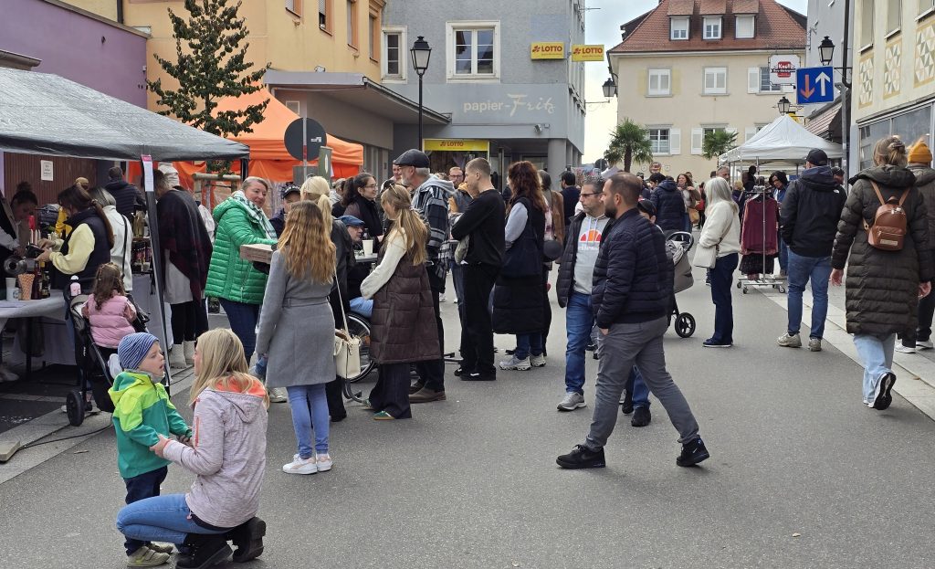 Ein Blick auf die Autokennzeichen auf Straßen und Parkplätzen bewies übrigens, wie weit der Verkaufsoffene Sonntag mit seinen zwei Flohmärkten ausstrahlt: TUT, VS und SIG waren neben KN und STO sehr häufig, ebenso Schweizer Kennzeichen. Zwar suchten sich viele Parkplätze im Freien und stellten das Auto teilsweise etwas wild ab, aber auch das Parkhaus, das an diesem Tag kostenlos genutzt werden konnte, wurde gut genutzt und bot kurze Wege.