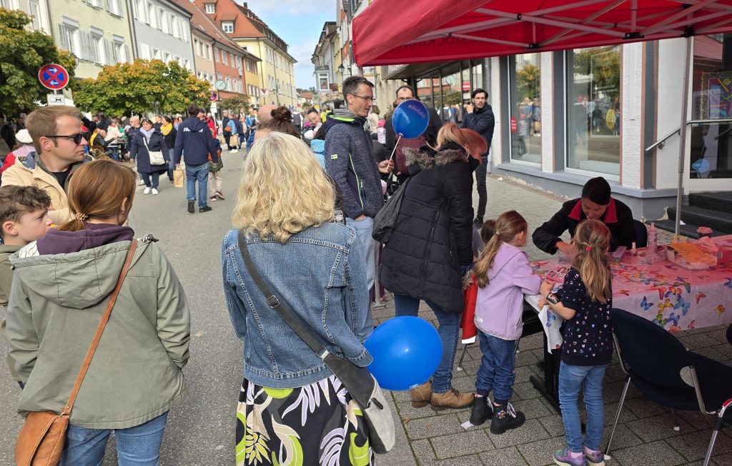 Beim Honold-Haus hatten auch die Angebote für die Kinder regen Zulauf – temporäre Glitzertattoos sind immer sehr beliebt und das Puppentheater sorgte für gute Laune. Die Kinder strahlten schließlich mit dem Sonnenschein um die Wette. Sie freuten sich auch sehr über die blauen Luftballons, die ihnen das Bibermasskottchen der Biberbahn in die Hand drückte. Und wann läuft schon mal ein lebensgroßer Biber durch Stockach?