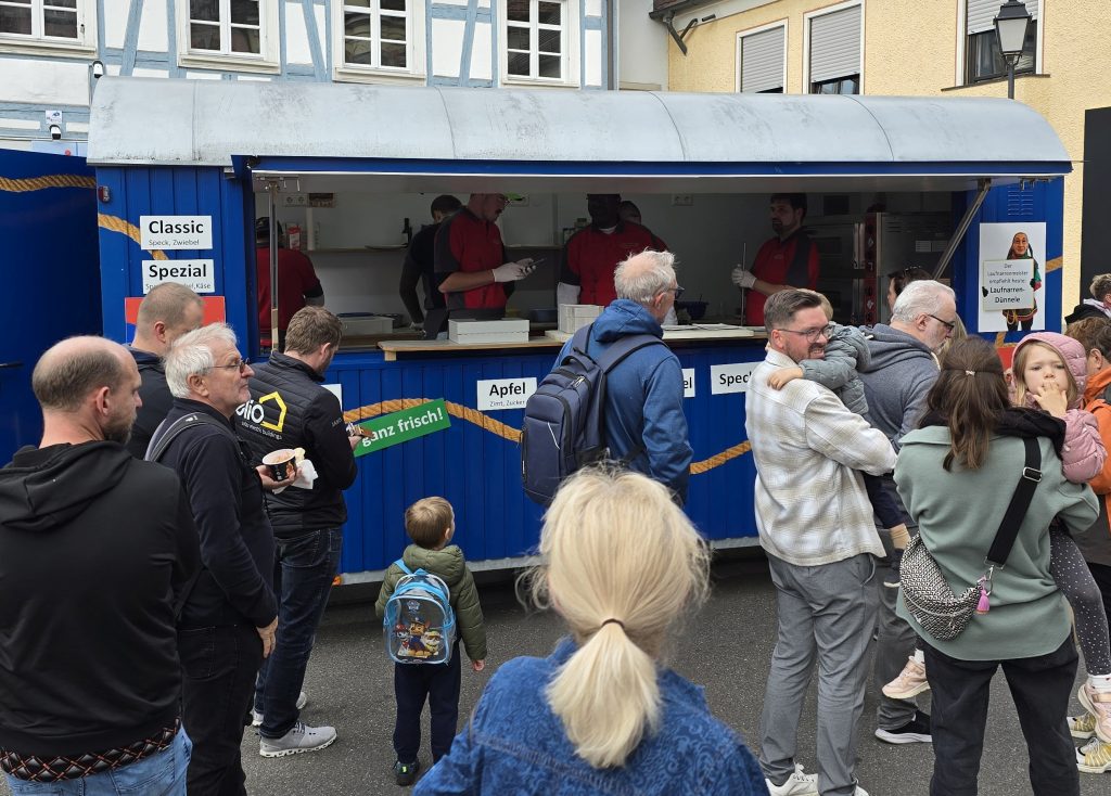 Das Honold-Haus war eindeutig eine der Besonderheiten an diesem Verkaufsoffenen Sonntag. Ebenso besonders war das ehrenamtliche Engagement, das an vielen Stellen zu sehen war: Traditionell sind die Laufnarren immer mit ihren Dinnele vertreten und ziehen die hungrigen Besucher an, doch auch andere Vereine bewirteten an ihren Ständen in der Innenstadt – zum Beispiel der Eintracht-Chor am oberen Ende der Hauptstraße mit Kuchen oder der TV Jahn in der Unterstadt mit Waffeln.