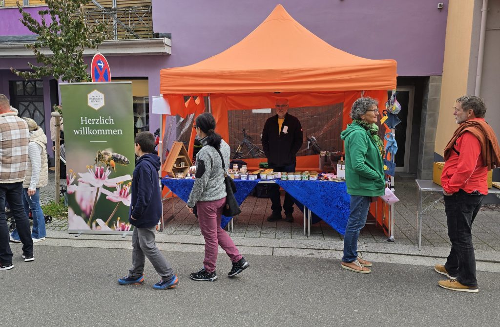 Apropos Bienen: Der Imkerverein hatte allerlei Infos über die Honig produzierenden Tierchen dabei. Interessierte konnten sich sogar echte Bienenwaben anschauen. In Live gab es Bienen und Wespen zudem überall da, wo es süß war – zum Beispiel beim Umweltzentrum. Dessen Apfelverkostung war sehr gefragt. So mancher begegnete dabei einer alten Sorte wieder, die er schon lange nicht mehr geschmeckt hatte – andere lernten Sorten kennen, von denen sie noch nie gehört hatten. Der Clou an dieser Aktion: All diese Sorten kommen vom Obstlehrpfad in Airach, wo sogar noch mehr Sorten zu finden sind.