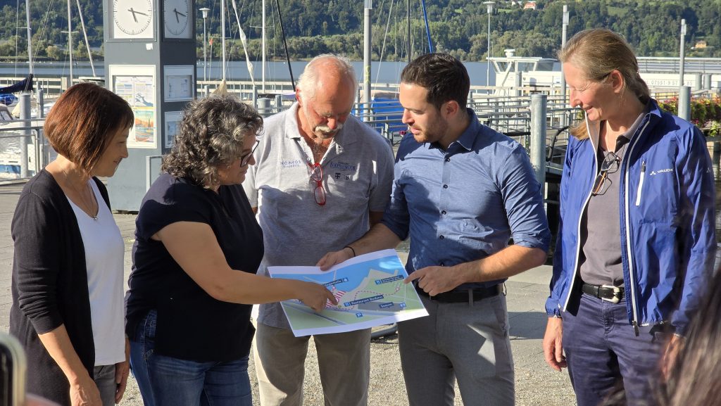 Bei einem Pressetermin informierte die Gemeindeverwaltung über den Ablauf der Arbeiten und welche Einschränkungen es dadurch in der kommenden Zeit am und im Hafen von Bodman geben wird. Dort kommt das Material aus allen Häfen für den Abtransport per Lastwagen an.