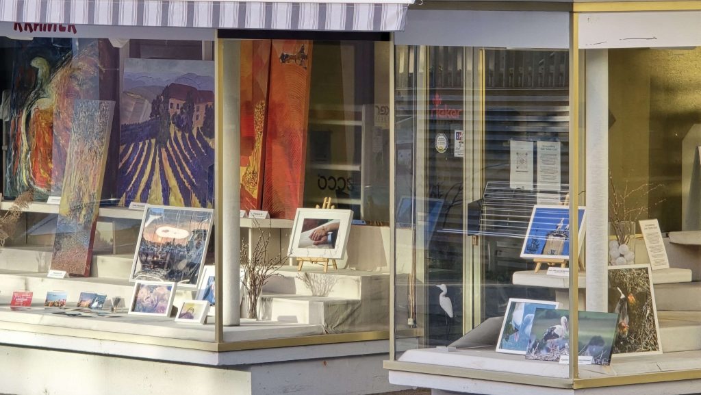 Übrigens: Die Ausstellung „Vater, Tochter, Kunst“ im Schaufenster des ehemaligen Schuhhauses wird voraussichtlich noch so lange zu sehen sein, bis das Gebäude für den Abriss geräumt werden muss.