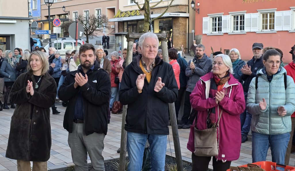 Der katholische Pfarrer Thomas Huber erklärte, Demokartie sei nicht nur eine Staatsform, sondern eine Haltung der Gesellschaft. Er freute sich, wie viele Memnschen sich auf dem Vorplatz von St. Oswald eingefunden hatten, um zu zeigen, wie wichtig ihnen die demokratischen Werten seien.