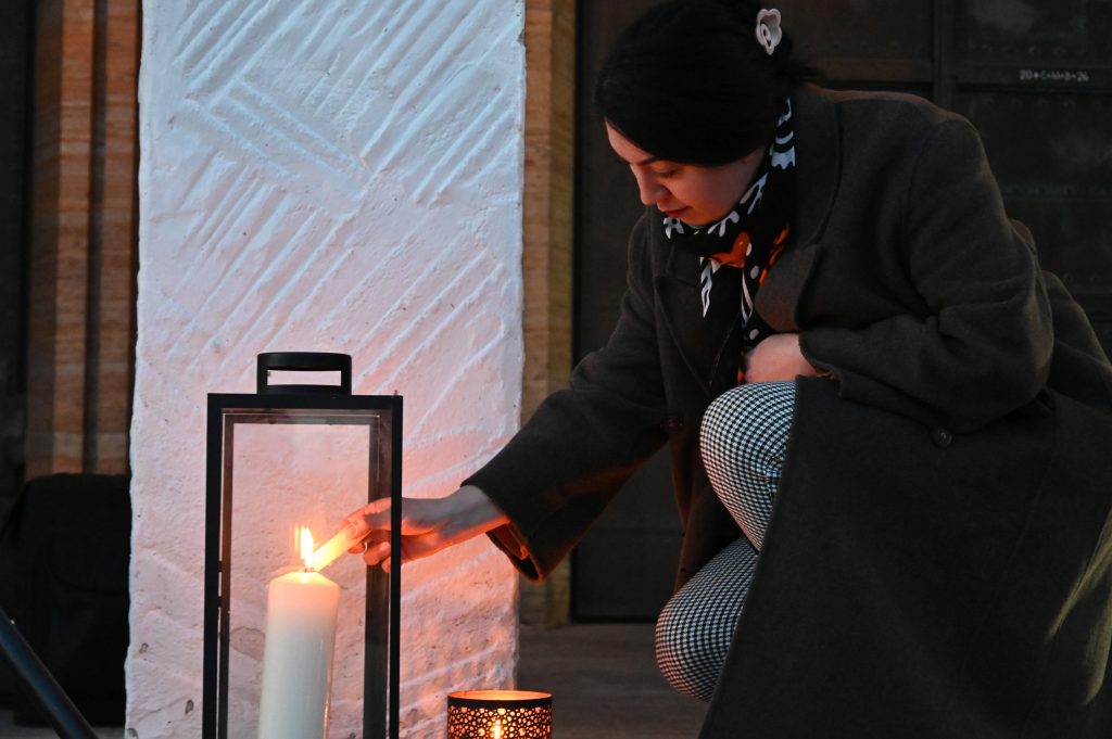 Yasaman Lashgari von der Kulturbrücke merkte an, es sei nicht selbstverständlich, dass die Demokratie in Deutschland immer so bleiben werde, wie sie sei. Sie machte einen Exkurs in ihr Heimatland Iran, wo es einst die erste Menschenrechtserklärung gegeben habe, ehe ein Wandel stattgefunden habe. Sie mahnte deshalb, in die Vergangenheit zu blicken, um die Zukunft zu gestalten. Schließlich zündete sie eine große Kerze für die Opfer an.
