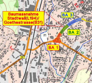 Bauabschnitt 3 erstreckt sich von der Einmündung Talstraße bis zur Einmündung Stabelstraße. So wie die drei Abschnitte liegen, wird also immer die direkte Verbindung von der B31-alt zur L194 abgeschnitten sein. Für alle, die diese Strecke täglich oder regelmäßig fahren, bedeutet das also mehr als anderthalb Jahre Umleitung.