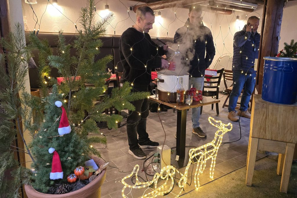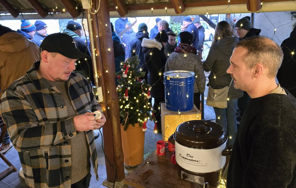 Immer wieder kam jemand dazu und die Gäste verweilten lange. Sie ließen sich Glühwein, Weißwürste und mehr, die Christian Borngräber und sein Team servierten, schmecken. Alles war für den guten Zweck, denn der Inhalt des Spendenfässchens geht an den Verein Dorffreundschaft Maygas-Ludwigshafen. Essen und Getränke gab es rein gegen Spenden, die Gottfried Feiß am Ende sogar noch um 200 Euro aufstockte.
