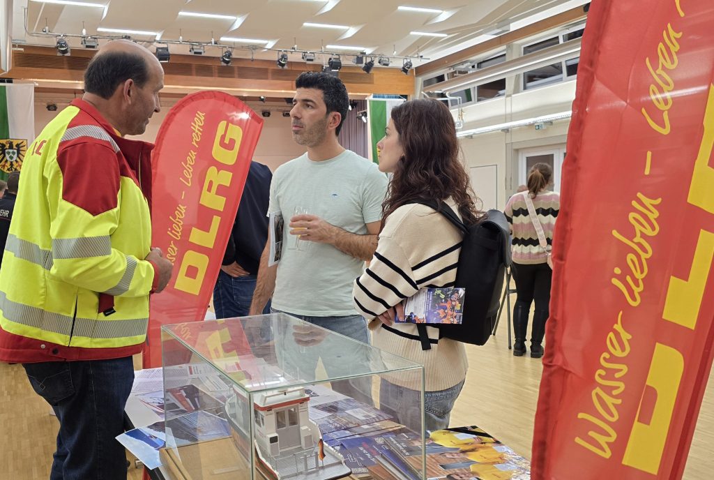 Bei der Feuerwehr gab es sogar ein bisschen was zum Ausprobieren: Wer wollte, durfte sich mal eine Atemluft-Flasche auf den Rücken schnallen. Bei der DLRG zog das Modell eines Bootes die Blicke auf sich. Es handelte sich um das Wasserfahrzeug, das die Ortsgruppe Bodman-Ludwigshafen sich wünscht und auf das sie hinarbeitet.